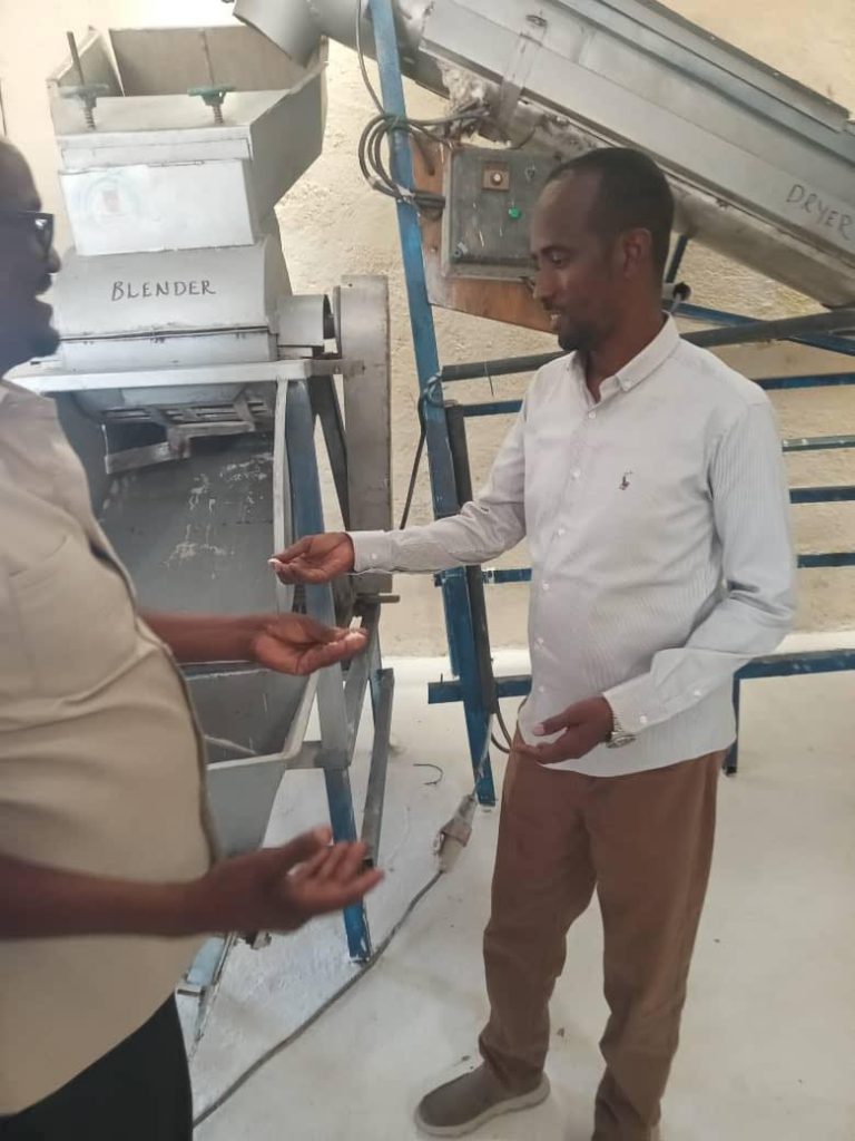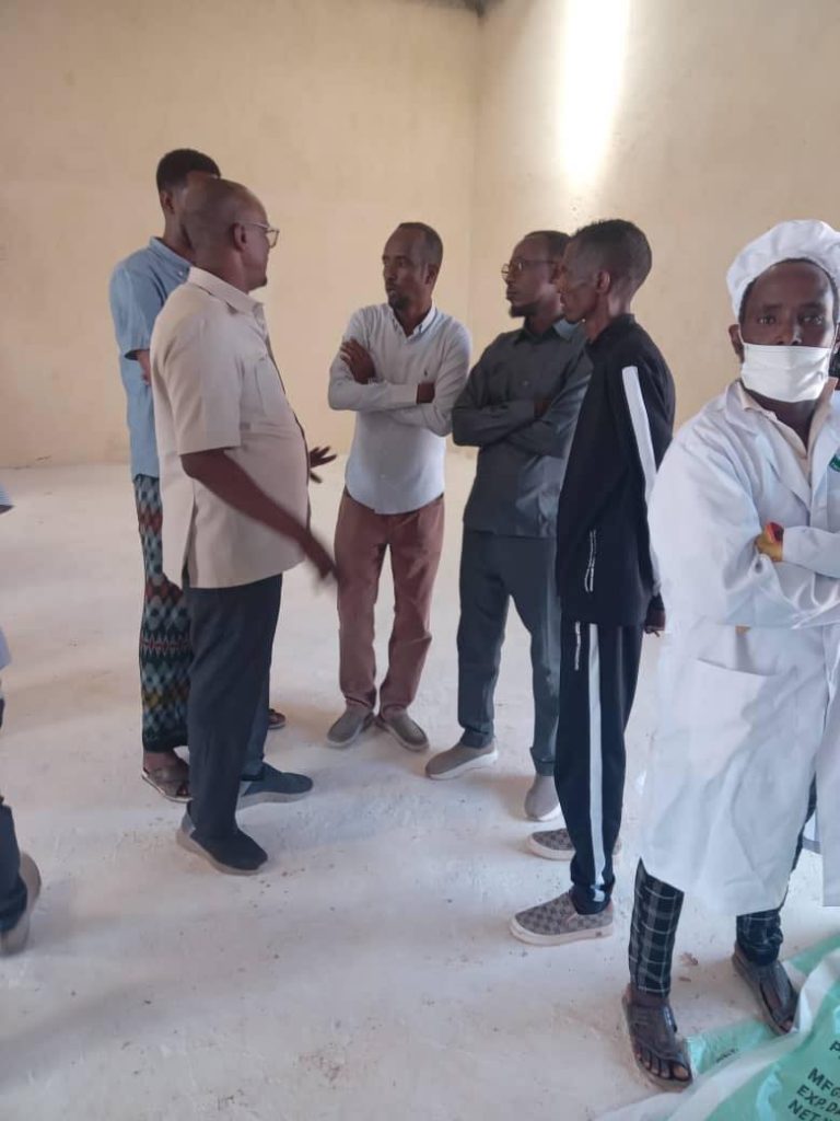 Mas’uuliyiin uu Hoggaaminayay Maareeyaha Wakaaladda Dabagalka Cunnada, Dawooyinka iyo Adeegyada Caafimaadka DDS, Mudane C/laahi Maxamuud Ayaa Booqasho iyo indha-indhayn Ku Tagay Warshadda Milixda ee Iskaashatada Barwaaqo ee Degmada Hargeele.